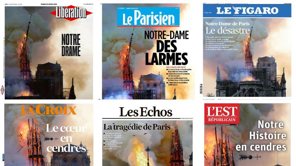L’incendie qui a frappé Notre-Dame de Paris le 15 avril 2019 a donné lieu à ce que certains perçoivent comme une surenchère, mais que d’autres considèrent comme un écho à la profondeur du choc ressenti. Cela correspond à la fois à la logique intrinsèque de la représentation médiatique, à une authentique peine collective et à une logique idéologique dont la dernière occurrence significative remonte à 2015 et à la France « Je suis Charlie ». Libération a été, je crois, le premier journal à dégainer un parallèle avec le 11-Septembre en diffusant sur les réseaux sociaux la Une du numéro à paraître le lendemain. L’écroulement de la flèche ou le rôle des pompiers… (cette image des pompiers new-yorkais défilant avec un drapeau français en hommage à leurs collègues…) Certes, nous avons pu retrouver avec le spectacle de cet incendie un engagement similaire dans la catastrophe : un effet de sidération, tout d’abord, en découvrant les premières images et très vite les premières vidéos, montrant la cathédrale en feu, alors que la nuit n’était pas encore tombée (pour ma part, j’ai appris la nouvelle très vite, peu après 19h). Puis la quête de nouvelles images, de nouveaux points de vue (enthousiasme général pour les images du drone survolant les flammes). La répétition des mêmes images, la durée de l’événement, il ne se passe rien puis la flèche s’écroule, comme avec les Twin Towers, les informations qui nous parviennent sont parcellaires, mais juste suffisantes pour qu’on ne soit pas tenté d’incriminer les extra-terrestres, Daesh ou un gang viking.