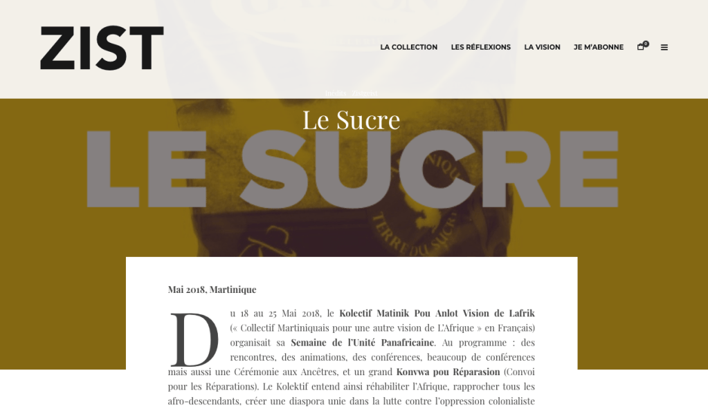 Quelques heures après le tweet de Zaka Toto, Politis a ajouté dans les notes de bas de page la mention suivante : « Pour une série très complète sur le sucre, son histoire et les récupérations politiques, lire ce blog{: target= »_blank » }. », renvoyant à la série d’articles publiée par ZIST. Caramba encore raté ! Cette tentative de rattrapage fait long feu : qualifier ZIST de « blog » est simplement une réitération du mépris colonial. Car ZIST n’est pas « un blog », c’est une revue, présentée comme telle sur son site, à laquelle il est possible de s’abonner, et qui se déploie aussi bien sur le Web que dans une version papier.